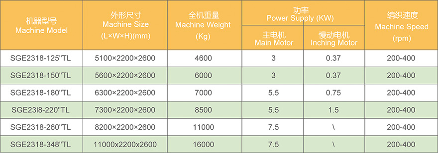 1、針型:舌針或嵌舌針2、機(jī)號:E2、E3、E6、E7、E8、E9、E12、E14、E16、E18